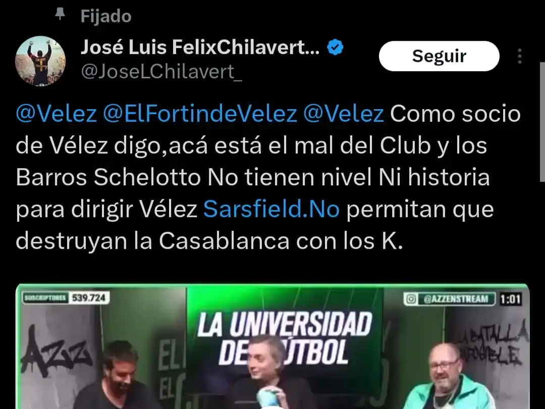 El propio Chilavert, a través de su cuenta de X (ex Twitter), había manifestado su disconformidad ante la posibilidad de la llegada de los entrenadores: “Como socio de Vélez digo, acá está el mal del Club y los Barros Schelotto no tienen nivel ni historia para dirigir Vélez Sarsfield. No permitan que destruyan la Casa Blanca con los K”. Sin embargo, tanto la Comisión Directiva de Vélez, que preside Fabián Berlanga, como el Director Deportivo, Ricardo Alvarez, siguieron adelante con el plan GBS para reemplazar a Sebastián Domínguez.